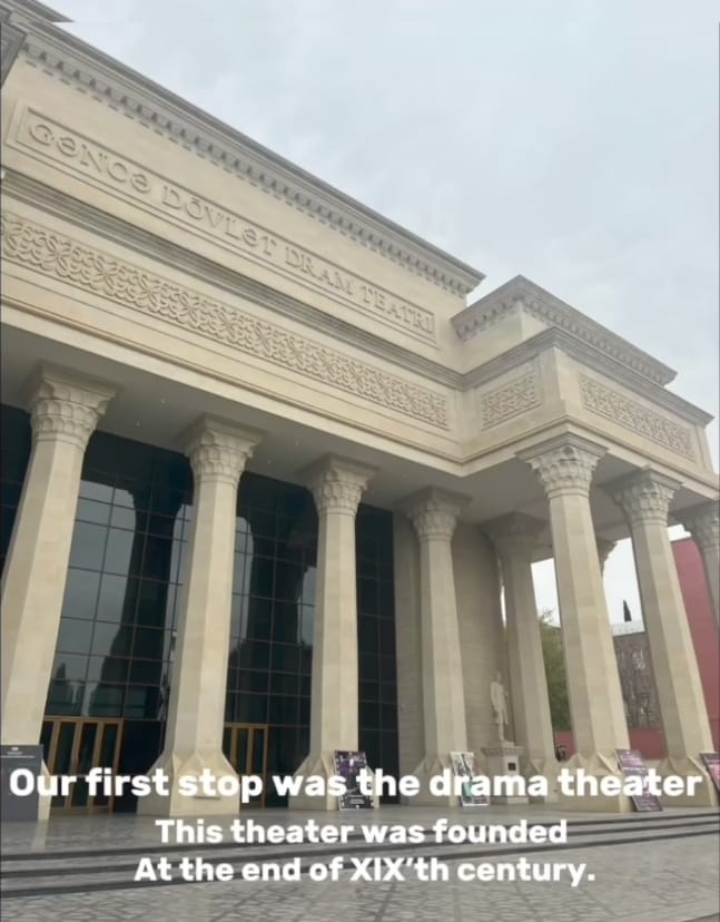 İlk öncə onlar “Gəncə Dövlət Dram Teatrı”na getmiş və şəkil çəkdirmişlər. Daha sonra “Gəncə Dövlət Kukla Teatrı”na baş çəkmiş və tarixi haqqında araşdırmışlar. Sonrakı məkanları isə “Məhsəti Gəncəvi Mərkəzi” olmuşdur. Onlar Mərkəzi ətraflı şəkildə gəzmiş və burada onlara məşhur şairə Məhsəti Gəncəvi onun həyat və yaradıcılığı, həmçinin Mərkəz haqqında məlumat vermişlər. Tələbələr daha sonra “Çökək hamam”memarlıq abidəsi ilə gəzintilərinə davam ediblər. Məhz buradan onlar həmçinin “Cümə Məscidi” digər adı ilə desək “Şah Abbas Məscidi”nə baş çəkmiş və tarixi haqqında geniş məlumat öyrənmişlər. Tələbələrin son məkanı isə məhz “Xan bağı” olmuşdur. Qədim tarixə malik olan “Xan bağı” əsl adı ilə desək “Sərdar bağı” Gəncəlilərin əsas istirahət mərkəzidir. Tələbələr bu bağın tarixi haqqındada biliklərə yiyələnərək xoş gün keçirmişlər.