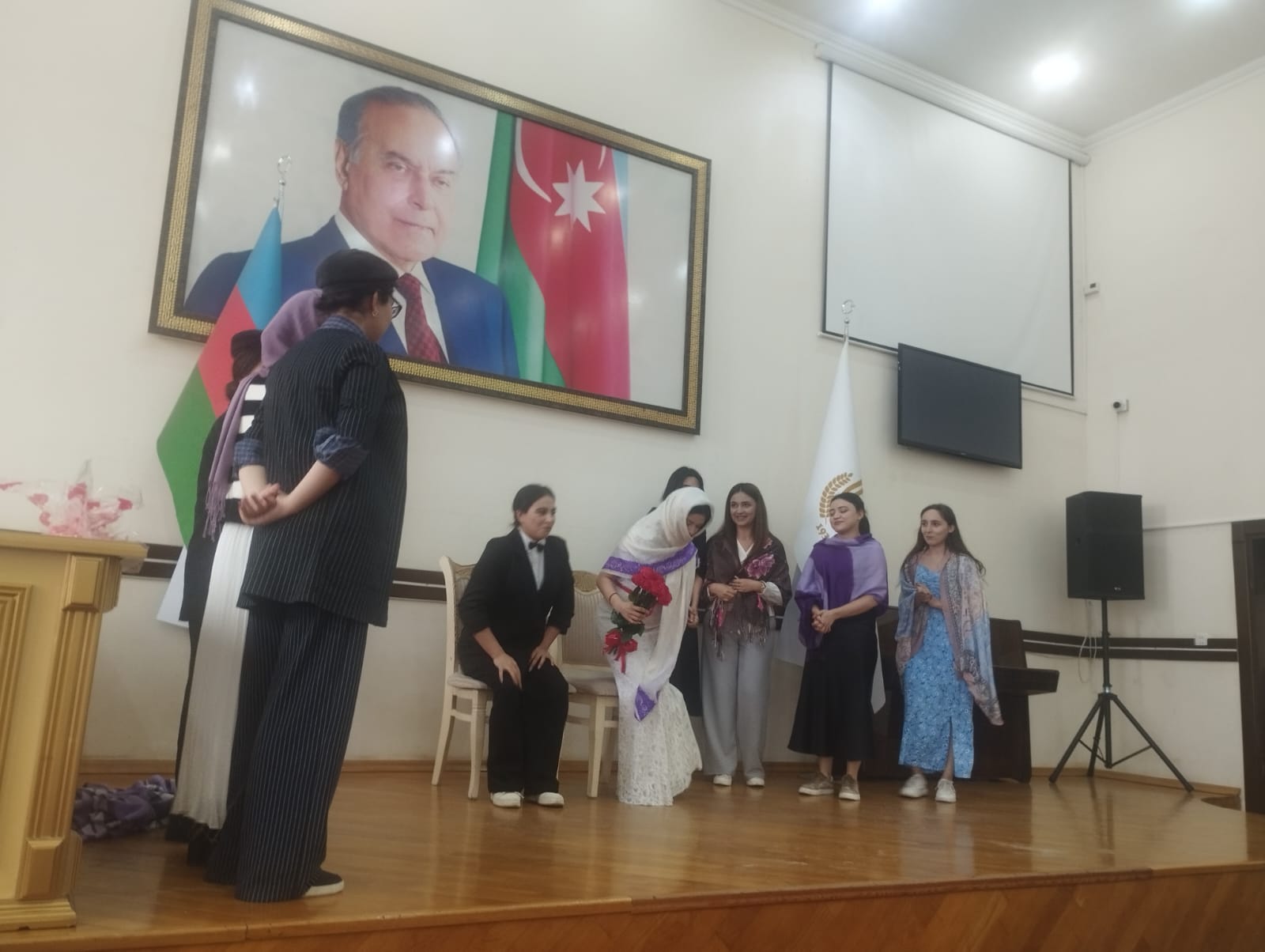 15.05.2025-ci il tarixdə Pedaqoji fakültənin İbtidai sinif müəllimliyi ixtisasının 2-ci kursunda b/m Hüseynova Günay Şəmistan qızının “Nitq inkişafı” fənnindən auditoriyadan kənar fəal interaktiv dərsi oldu. Tələbələr semestr ərzində fənnə dair əldə etdikləri bilikləri praktik şəkildə nitqin bütün məziyyətlərinə uyğun, natiqlik sənətinin qanunauyğunluqlarını gözləyərək, üslubu normalara uyğun olaraq əyani şəkildə səhnədə nümayiş etdirdilər. Təşkil olunmuş dərsdə fakültənin dekan müavini b/m. Haqverdiyev İlqar, Təhsilin pedaqogikası və metodikası kafedrasının müdiri dos. Quliyev Allahverdi , dos. Apoyev Bayram, Azərbaycan dili kafedrasının b/m. f.ü.f.d Mətanət Mahmudova , digər əməkdaşlar və tələbələr iştirak etdilər.