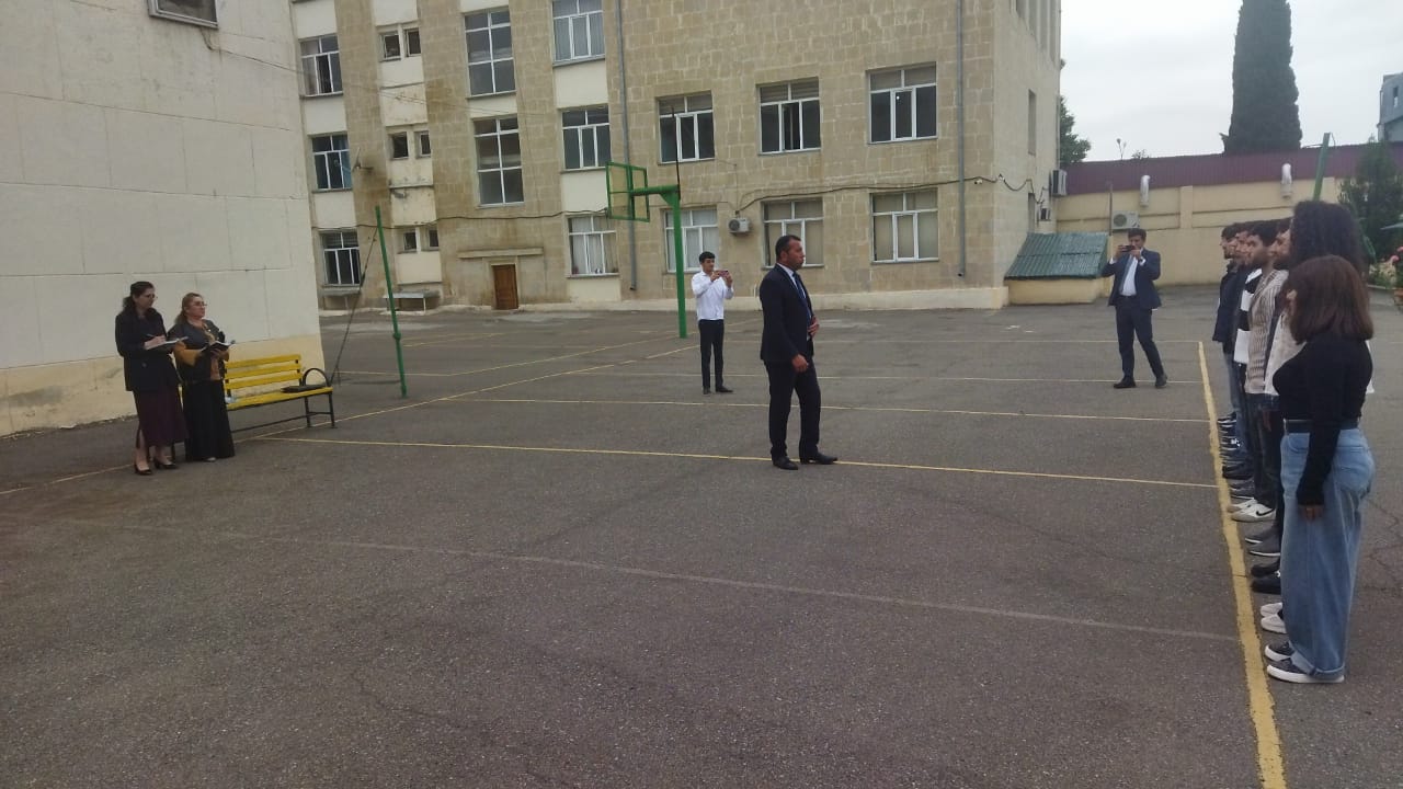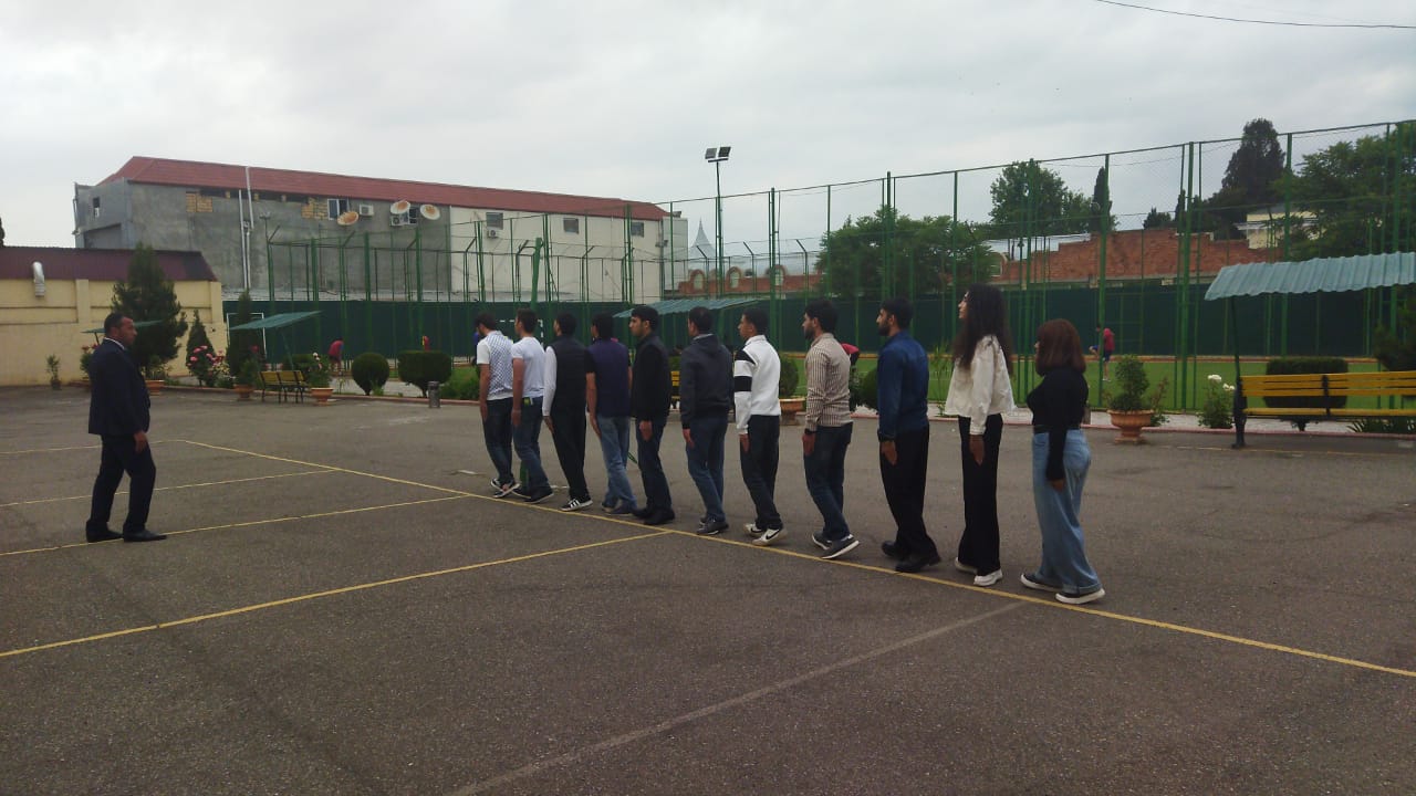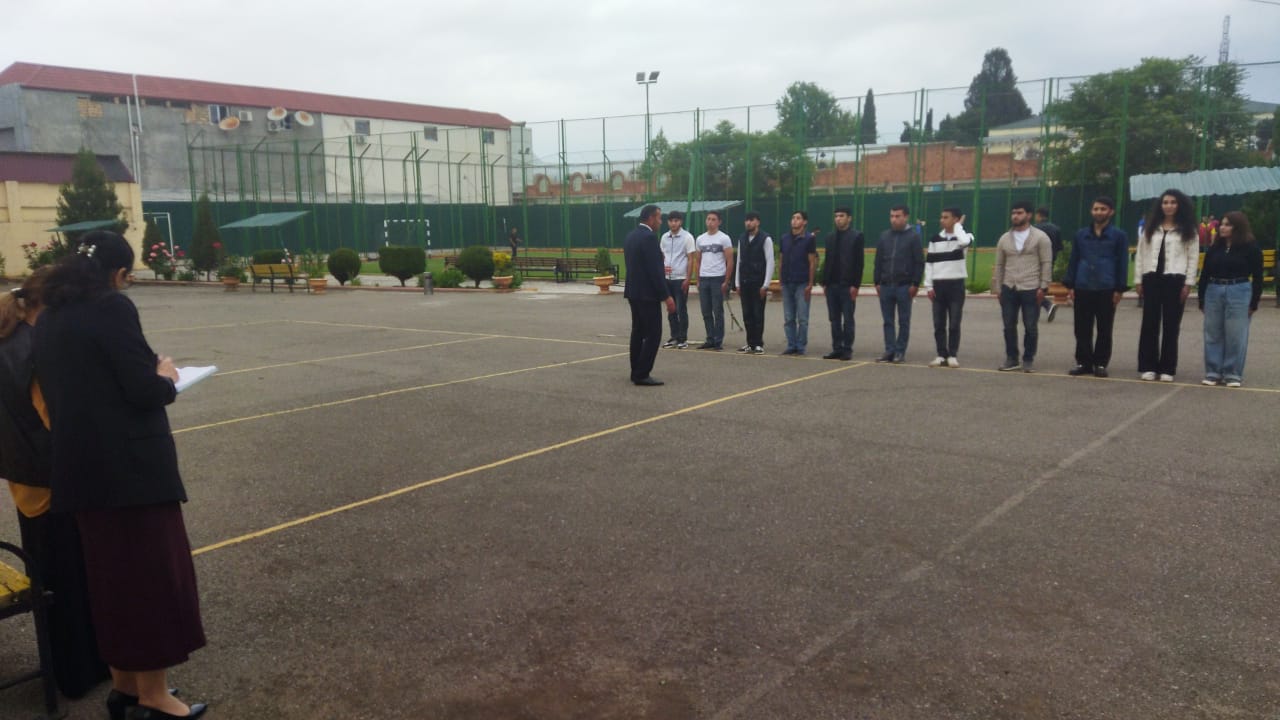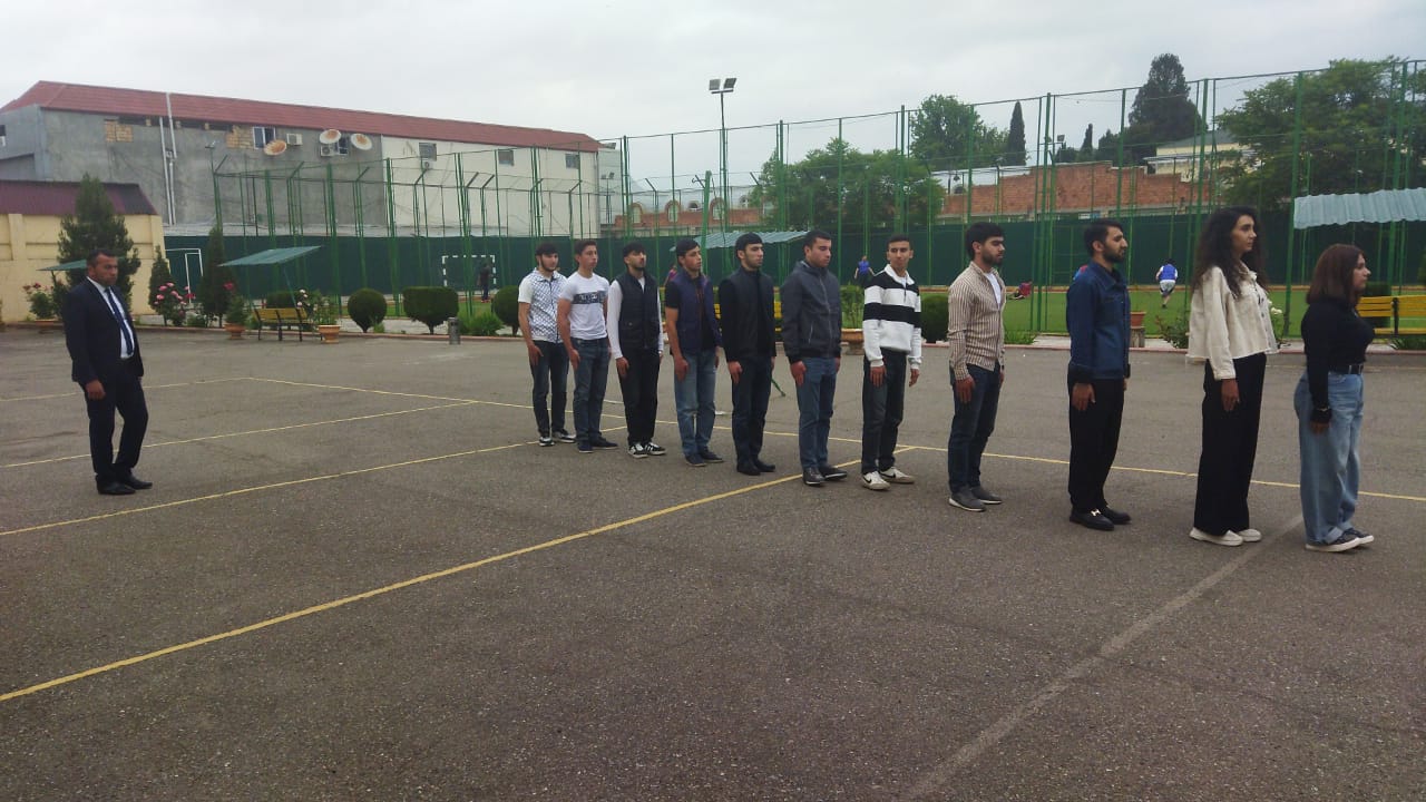 Fiziki tərbiyə, çağırışaqədərki hazırlıq və mülki müdafiə kafedrasının müəllimi Məmmədov Şahmar Rüstəm oğlunun Fiziki tərbiyə və çağırışaqədərki hazırlıq ixtisasının II kurs tələbələri ilə Sıra hazırlığı fənnindən “Sıra baxışı” mövzusunda açıq dərsi dinlənildi. Dərsdə kafedra müdiri əvəzi b/m Mahmur Məmmədova və kafedranın müəllimi Zülfiyyə Ələkbərova iştirak etdilər.