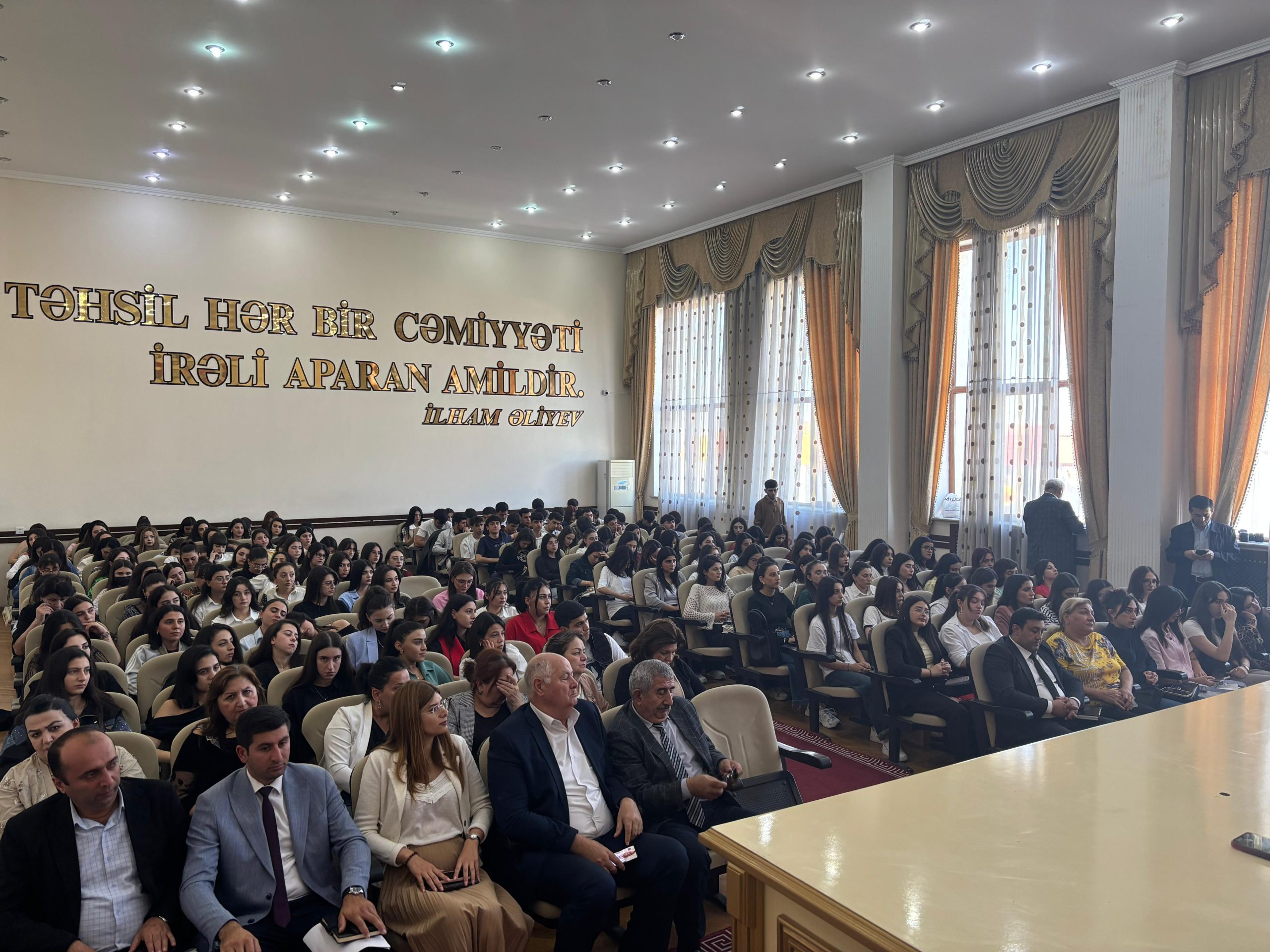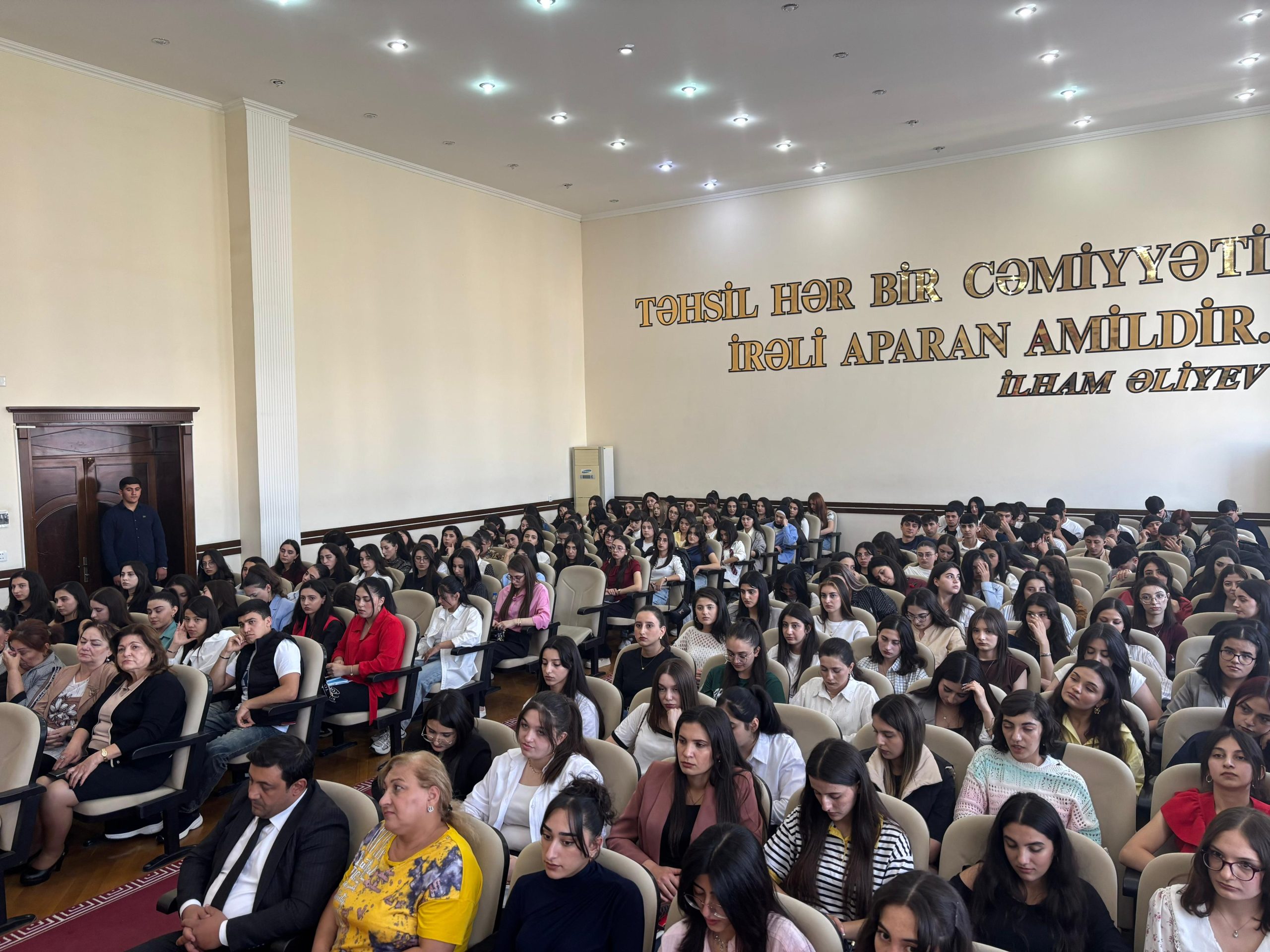 Gəncə Dövlət Universitetinin Fizika və Texniki və Pedaqoji fakültələrinin gənc fəal tələbələrinin iştirakı ilə “27 Sentyabr” anım günü ilə bağlı tədbir keçirilib. Tədbirin açılış sözü Gəncə Dövlət Universitetinin Humanitar məsələlər üzrə prorektoru dos. Gülsüm xanım Fətəliyevaya verilib. Mülki müdafiə kafedrasının müdiri b/m. Mahnur Məmmədova çıxış etmiş və tədbir iştirakçılarına öz töhfələrini vermişdir. Fizika və Texniki fənlər fakültəsinin II kurs tələbəsi Məmmədli Ülviyyə 44 günlük müharibə zaman yaşanan hadisələrdən danışmışdır. Fakültələrəmizin tələbələri anım günü ilə əlaqədar çıxışlar etmişdir. Tədbirimizin əsas məqsədi hər dəfə olduğu kimi bu dəfədə Gəncə Dövlət Universitetinin tələbələrini vətənpərvər yetişdirməkdir.