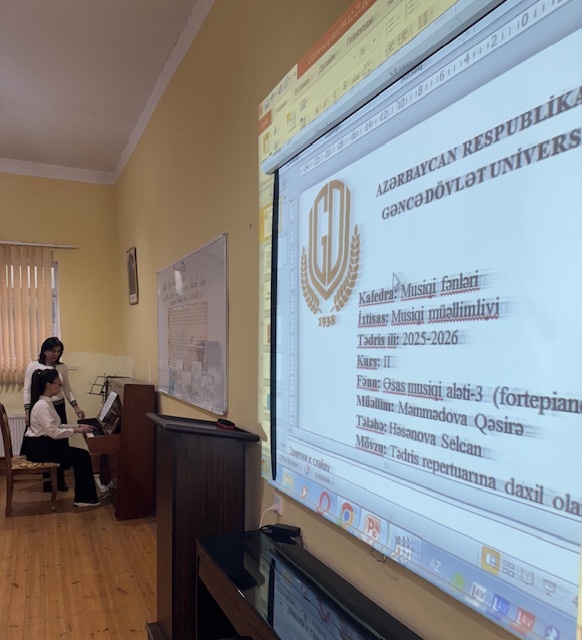 Açıq dərslərin qrafikinə əsasən 04 dekabr 2025-ci il tarixində “Musiqi fənləri” kafedrasının baş müəllimi Qəsirə Məmmədovanın “Əsas musiqi aləti-3” fənnindən “Tədris repertuarına daxil olan əsərlərin bədii ifası üzərində iş” mövzusunda “Musiqi müəllimliyi” ixtisası üzrə II kurs tələbəsi Həsənova Selcan Elmir qızı ilə fərdi məşğələ şəklində keçirdiyi açıq dərsi dinlənildi. Açıq dərsdə Gəncə Dövlət Universiteti PHŞ-in fəxri professoru, pedaqogika üzrə fəlsəfə doktoru, “Psixologiya” kafedrasının dosenti, Açıq dərslərə nəzarət komissiyasının üzvü Cəfər İbrahimov, “Musiqi fənləri” kafedrasının müdiri, professor Sevda Qurbanəliyeva, baş müəllimlər Səidə Həsənova, Nərgiz Haqverdiyeva, Rəşidə Məmmədova iştirak etdilər.