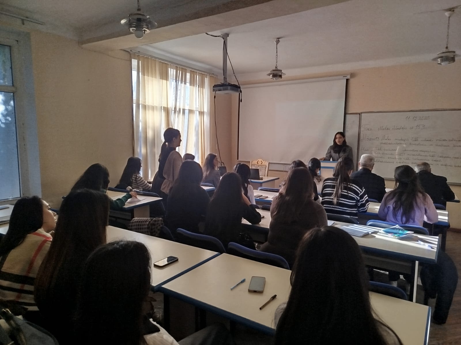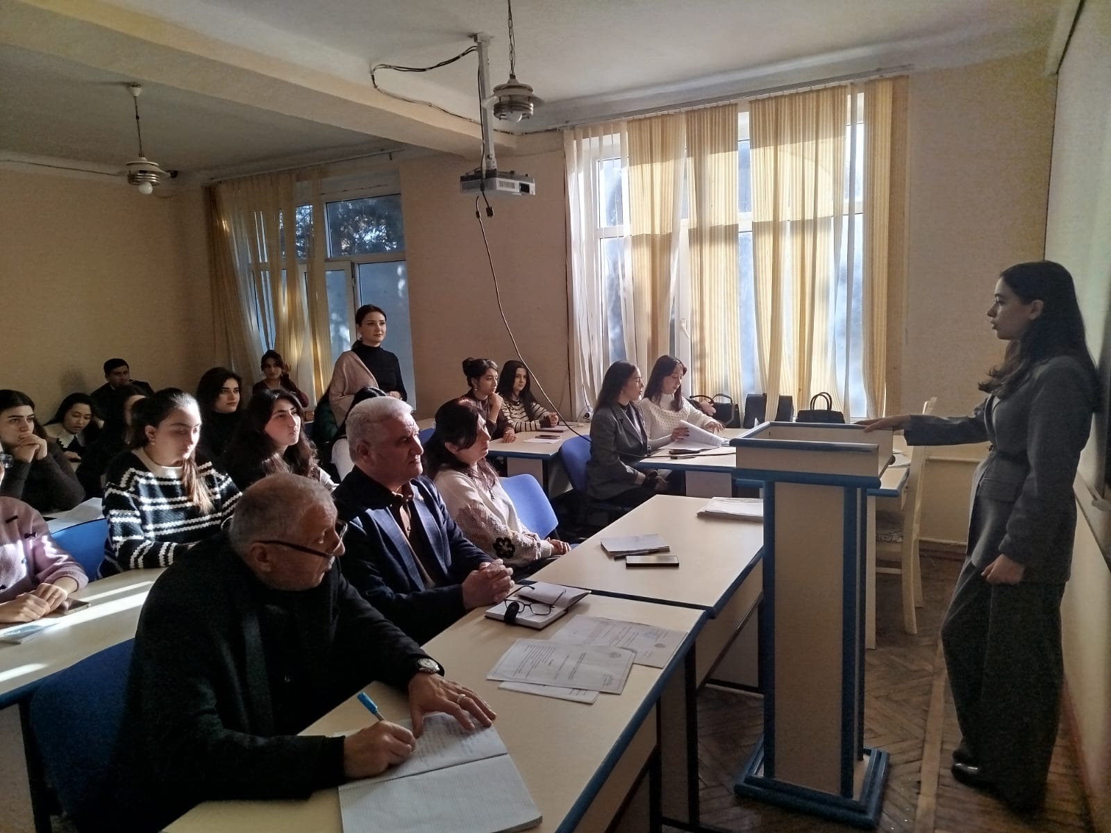 11.12.2025- ci il tarixində Fiziki tərbiyə, çağirişaqədərki hazirlıq və mülki müdafiə kafedrasının müəllimi Nurlana Babayevanın “Mülki müdafiə və ilkin tibbi yardım” fənnindən İbtidai sinif müəllimliyi ixtisasının 3 cü kurs tələbələri ilə “Mülki müdafiədə tibbi xidmət müəssələrinin tibbi təchizatının təşkili, hərbləşdirilmiş dəstələrin və əhalinin hazırlığı ” mövzusunda açıq dərsi keçirilmişdir. Dərsdə Metodiki qrupun sədr müavini İlqar Haqverdiyev, Fiziki tərbiyə, çağirişaqədərki hazirlıq və mülki müdafiə kafedrasının müdiri Şahmar Məmmədov və kafedranın müəllimləri b/m Fikrət Hüseynov, b/m Mahnur Məmmədova, m.Zülfiyyə Ələkbərova, m.Sərxan Əmiraslanov iştirak edirdilər.