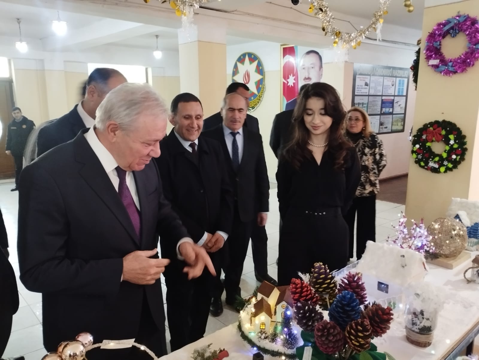 Sərgiyə Universitetin rektoru prof.Yusif Yusibov da dəvət olunub. Hörmətli prof.Yusif Yusibov tələbələrin 100-ə yaxın əl işi ilə yaxından tanış olub. Əl işlərinin üslub xüsusiyyətləri və işləmə texnikaları haqqında qrup nümayəndələri Silduz Hüseynova, Sevda Novruzova, Sürəyya Tağıyeva, eləcə də aktiv tələbələrdən Selcan Hüseynova rektora ətraflı məlumat veriblər.