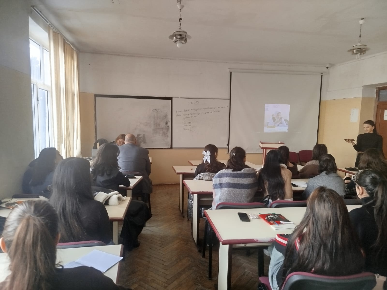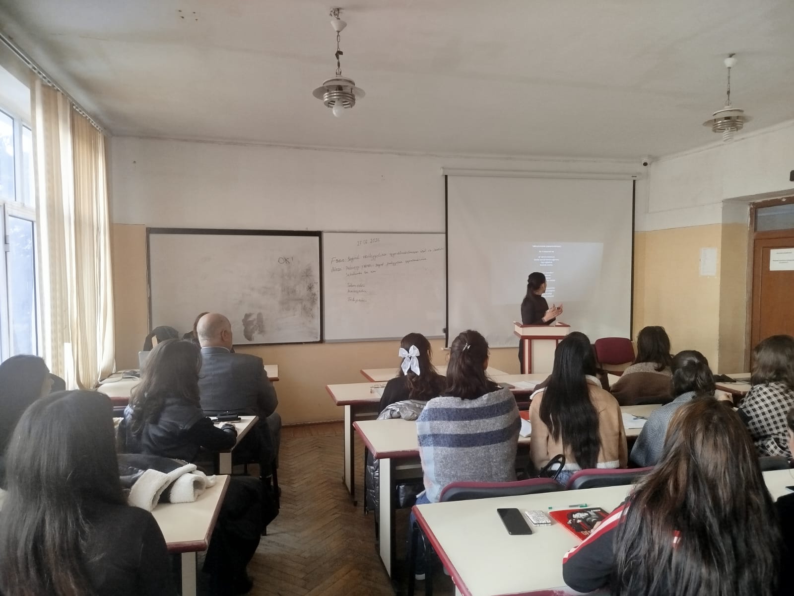 Dərsdə Təhsilin pedaqogikası və metodikası kafedrasının müdiri dos. A. Quliyev, fənn müəllimi