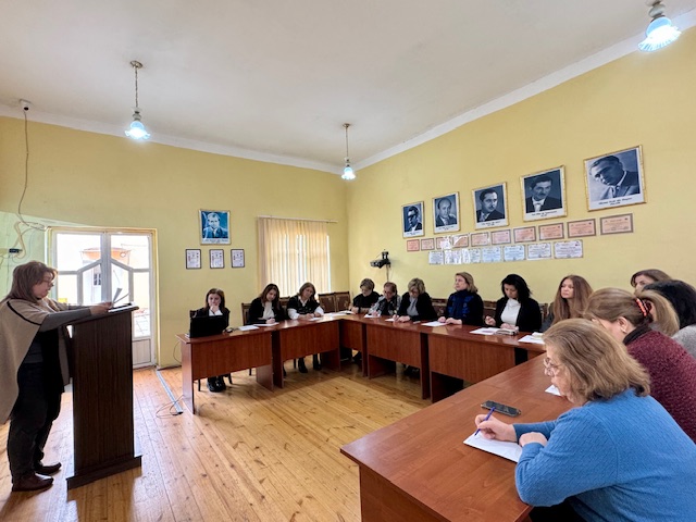 Təlimçi kafedranın baş müəllimi, s.ü.f.d. N.Seyfullayeva mövzu ilə əlaqədar məsələləri slaydlar əsasında, əyani şəkildə geniş şərh etdi, iştirakçıların sualları ətraflı cavablandırıldı.