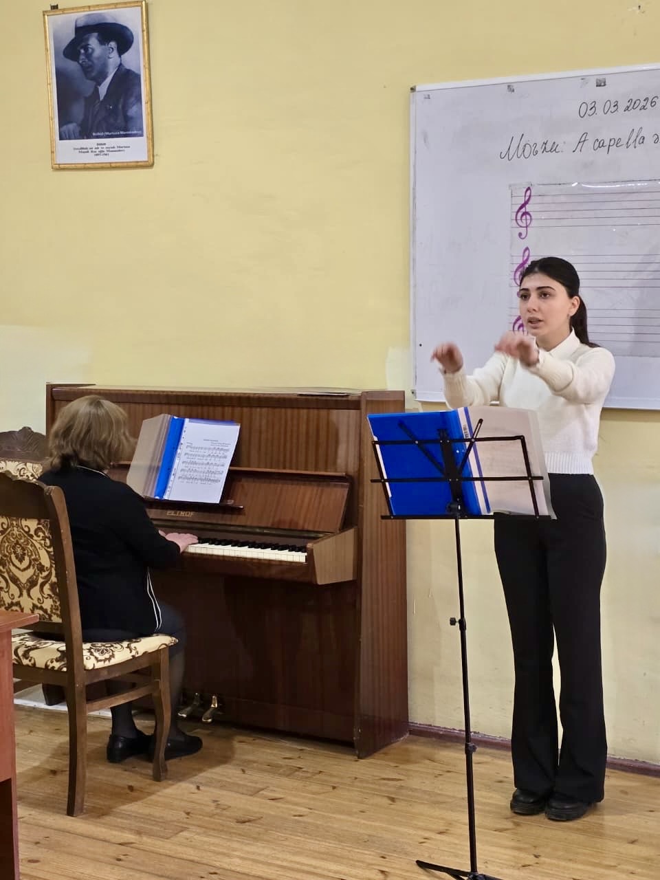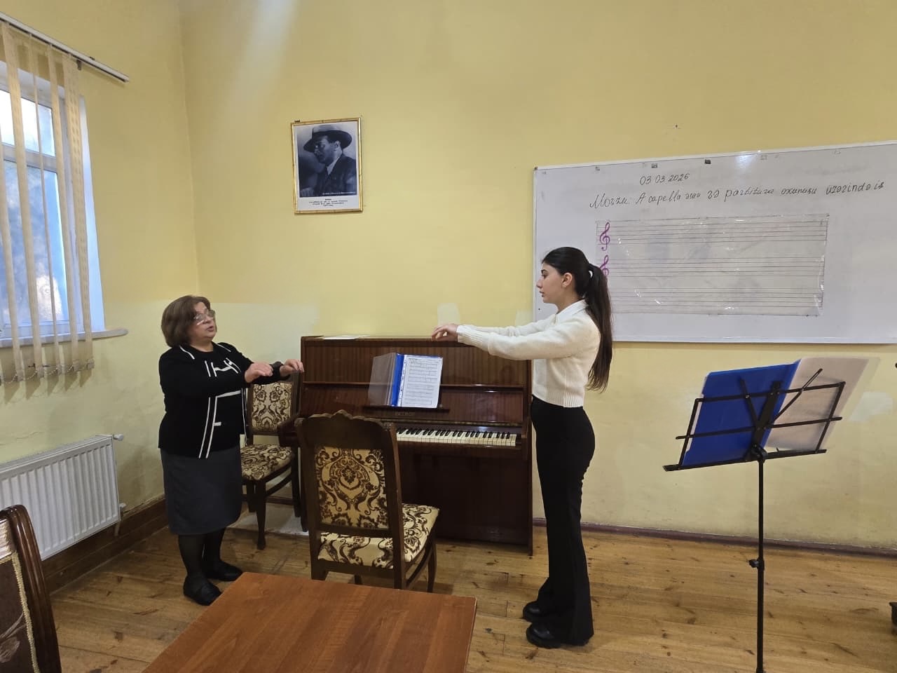 “Musiqi fənləri” kafedrasının 06.02.2026-cı il tarixli kafedra iclasında təsdiq olunmuş “Açıq dərslərin cədvəli”nə uyğun olaraq 03 mart 2026-cı il tarixində kafedranın baş müəllimi Sevil Şabanovanın “Dirijorluq-2” fənnindən “A kapella əsəri və partitura oxunuşu üzərində iş” mövzusunda “Musiqi müəllimliyi” ixtisası üzrə III kurs tələbəsi Zamanova Lilpar Mübariz qızı ilə fərdi məşğələ şəklində keçirdiyi açıq dərsi dinlənildi.