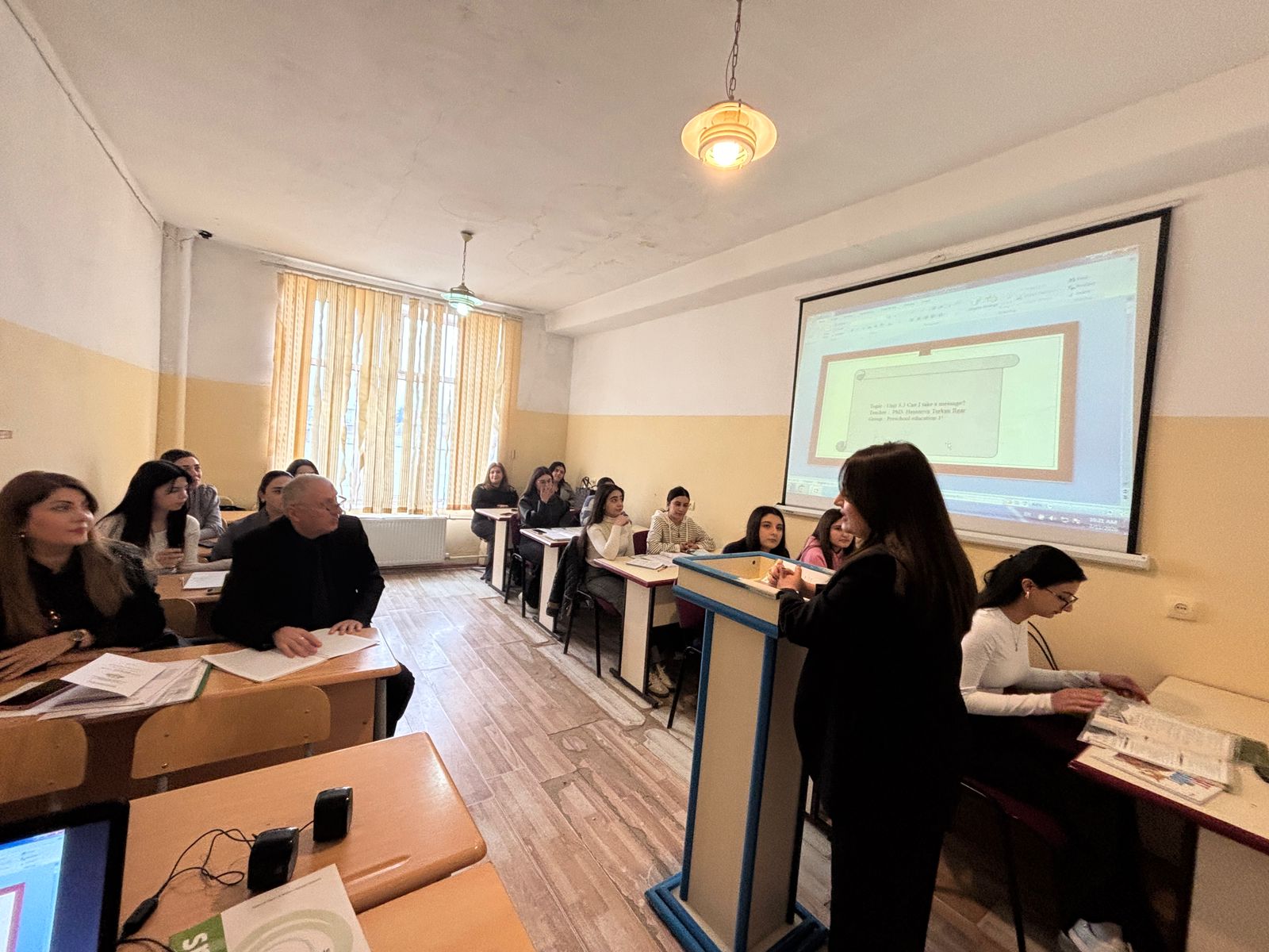 Dərsdə dekan müavini İ.Haqverdiyev, həmin kafedranin müəllimləri b/m Aytən Əfəndiyeva, m. Elzanə Musayeva, Kəmalə Həsənova və b/m Aynur Bəşirova iştirak edirdilər.