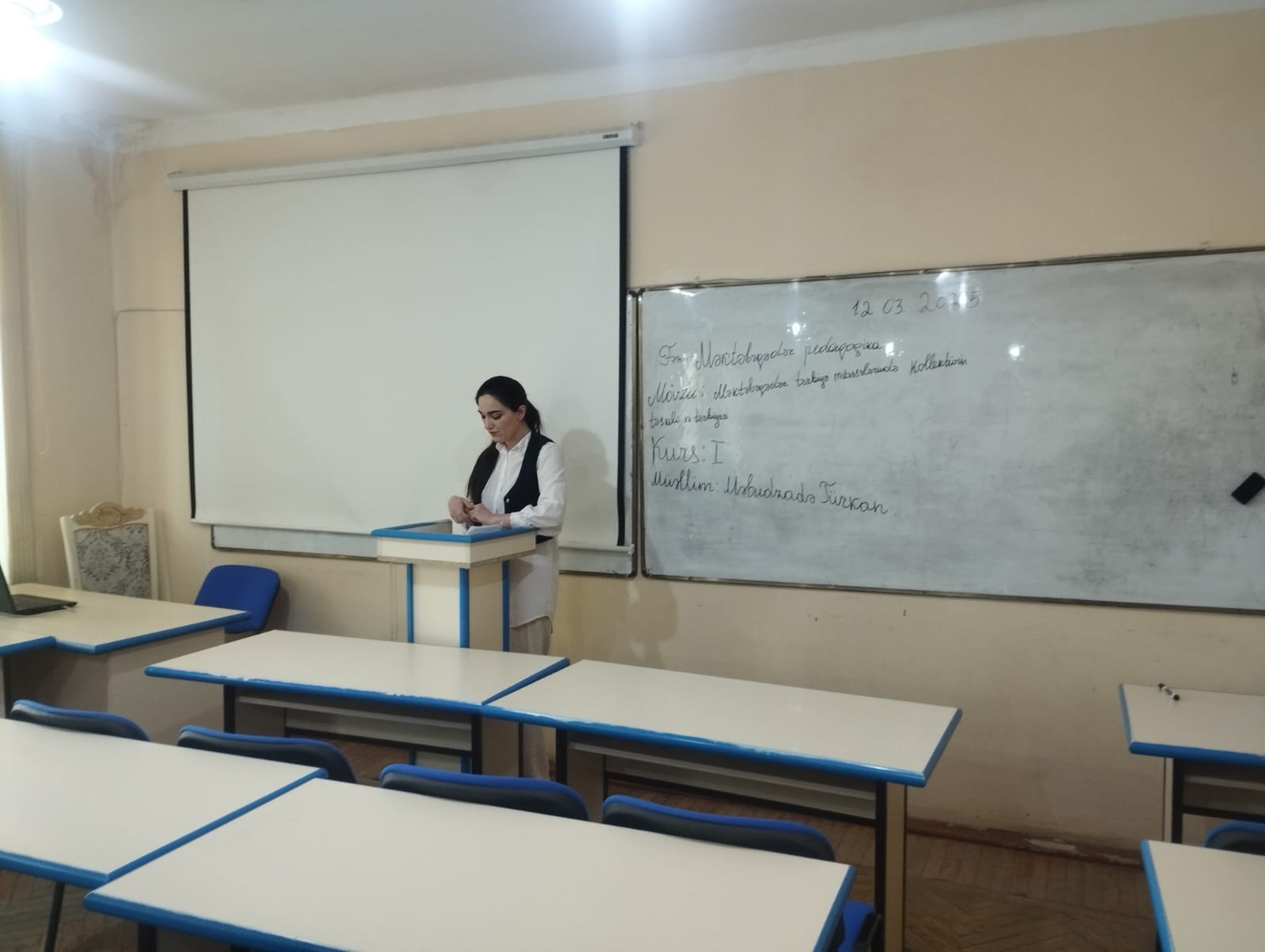 12.03.2025 ci il tarixində Məktəbəqədər təhsilin metodikası və metodologiyası ixtisasının magistrantı Türkan Məbudzadəninnin Məktəbəqədər təhsil ixtisasının tələbələri ilə Məktəbəqədər pedaqogika fənnindən “Məktəbəqədər təhsil müəssisələrində kollektivin təşkili və tərbiyəsi mövzusunda sınaq dərsi dinlənildi. Dərsdə Təhsilin pedaqogikası və metodikası kafedrasının müdiri dosent Allahverdi Quliyev, kafedranın dossenti Şəlalə Binnətova və fənn müəllimi Günel Aslanova iştirak edirdilər. Dərsdən sonra müzakirə oldu və lazımi tövsiyələr verildi.